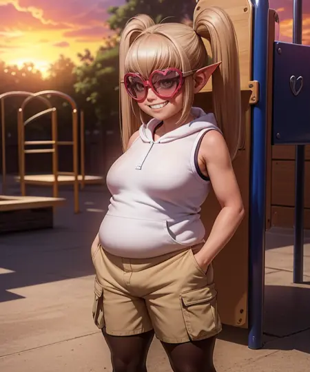 주요 의상 부정적 프롬프트: black_shorts, hoodie_strings, shirt_pocket, hoodie_pockets, hands_in_pockets, white_pantyhose, drawstrings,