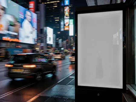 프롬프트 팁: "advertising sign, professional photography featuring a solid white advertising sign..."