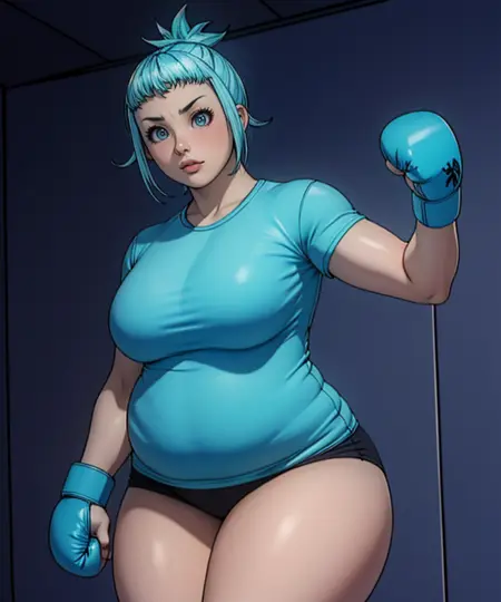 ボクシング衣装: MeroGymOutfit, teal_Tee_Shirt, dark_blue_buruma, boxing_gloves,