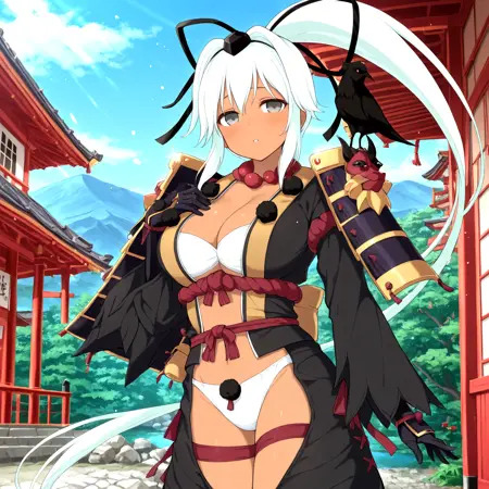 背中に差し込んだ剣をプロンプトに指定すると不安定なので、指定する場合は「holding_swords」などネガティブに含めてください。