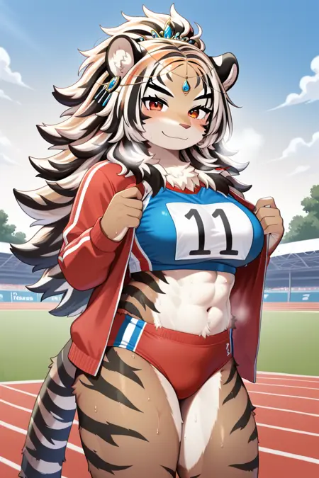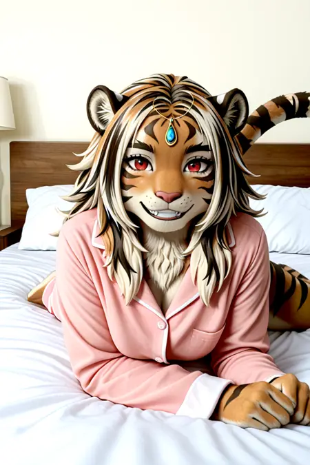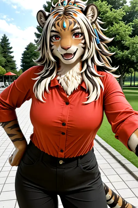 标签: durga \(housamo\),人形,毛茸茸的女性,老虎女孩,老虎耳朵,老虎尾巴,多色头发