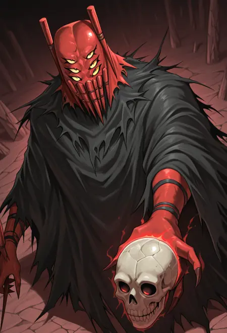 死亡之神,来自漫画《Dai Dark》(作者:Q Hayashida)的黑暗生物。她拥有无数能力、极其强大的力量、渊博的知识、酷炫的外表以及可能的永生。她有两种形态:主要形态为披着斗篷、戴着面具的漂浮身影;脱去斗篷后,她是一位肌肉发达的金发女性(可能),拥有六只眼睛。
