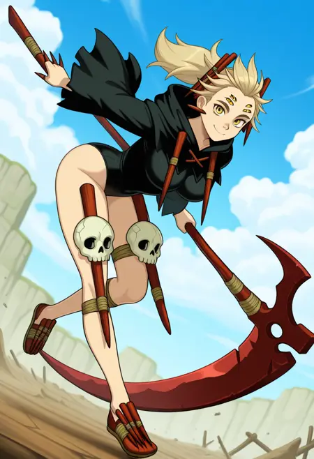 本Lora主要用于绘制Shimada的女性形态,大多数图像和同人作品都是这一形态。尽管在漫画中她多数时间穿着斗篷和面具,仅在入睡时才转换形态。数据比例为:shimada_death 17张,shimada_woman 48张。