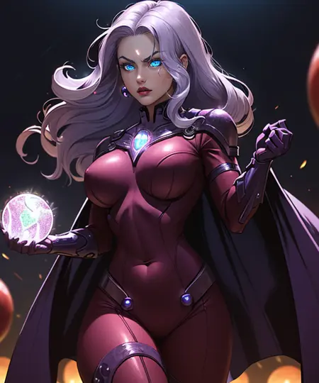 Magneta 是地球-982 的一名变种人,拥有与她个人偶像万磁王相似的能力,她的服装和意识形态均以万磁王为蓝本。她是变种人姐妹会的创始人,也曾是红皇后复仇者的一员……听起来我可能是在编造这一切来为一个平庸的 Rule 63 原创角色找借口,但事实上,Magneta 确实在 90 年代末期的漫威漫画中出现过,当时的故事变得非常非常怪异。总之,享受吧。