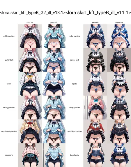 Depending on the model, entering a prompt for lifting a skirt may result in various variations. However, using this LoRA increases the likelihood of generating images where the skirt is lifted with both hands.