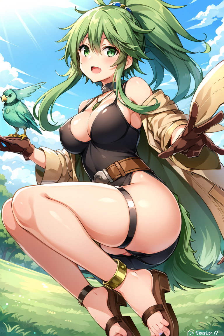 1girl,duel monster,green eyes,green hair,solo,long hair