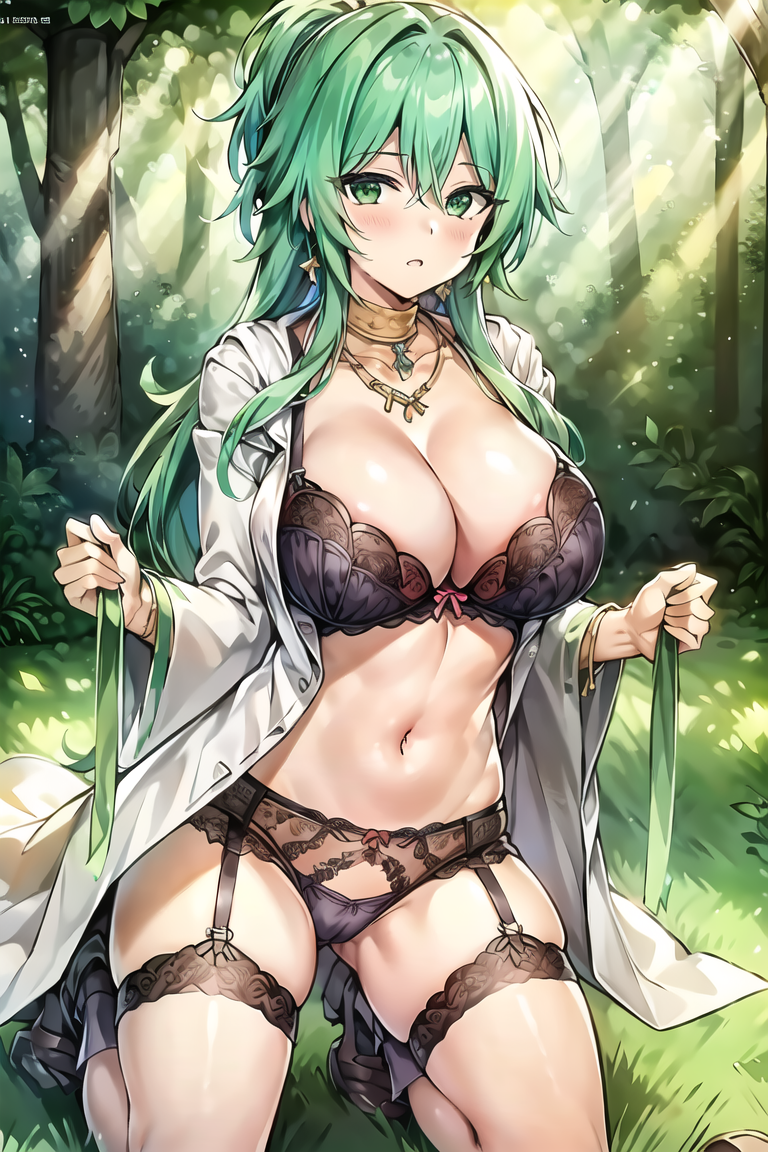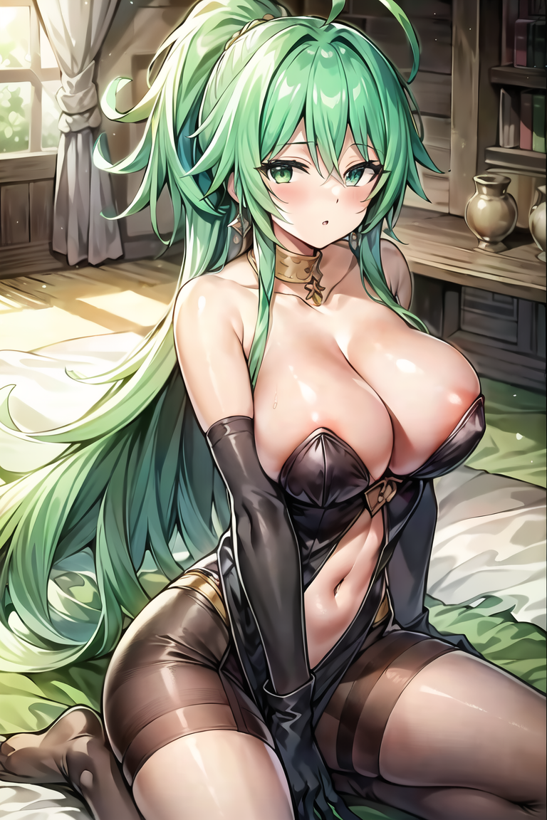 1girl,duel monster,green eyes,green hair,long hair,ponytail