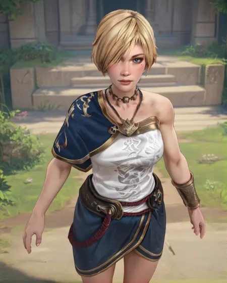leannaxl, 파란 눈, 금발 머리, 한쪽 눈 위의 머리카락, - 짧은 머리,