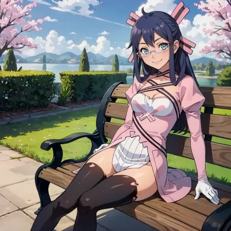 她的普通装扮为:“粉色连衣裙、发带、丝带、眼镜、黑色过膝袜、手套”