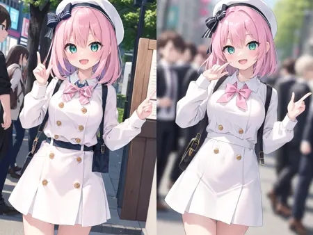 被写体以外の背景のみをぼかしたり、シャープにしたりするエフェクトLoRAです。