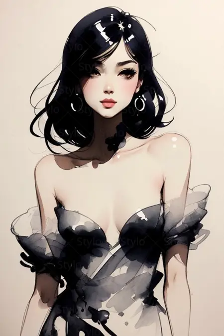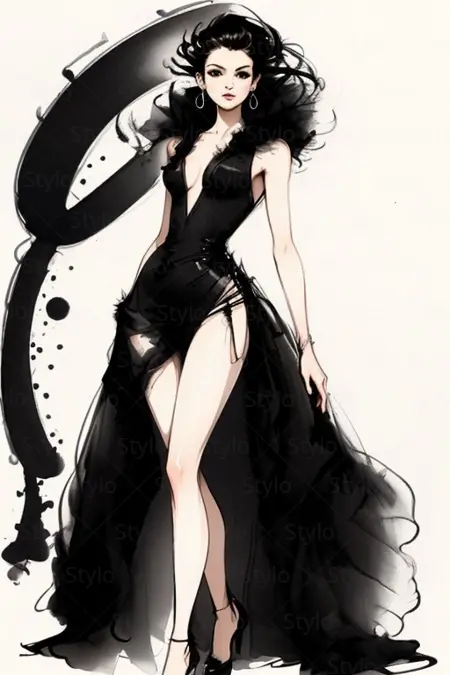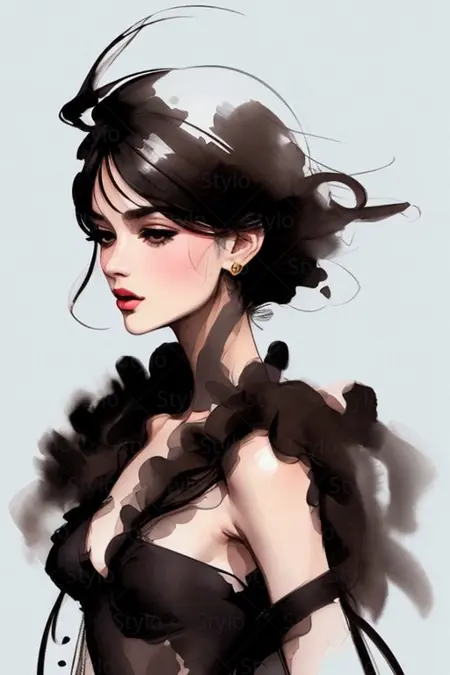 此LoRA基于时尚素描插图,与写实型检查点配合效果良好。