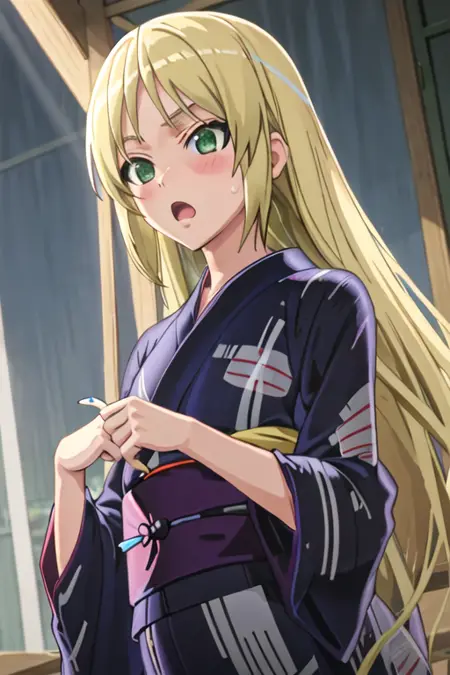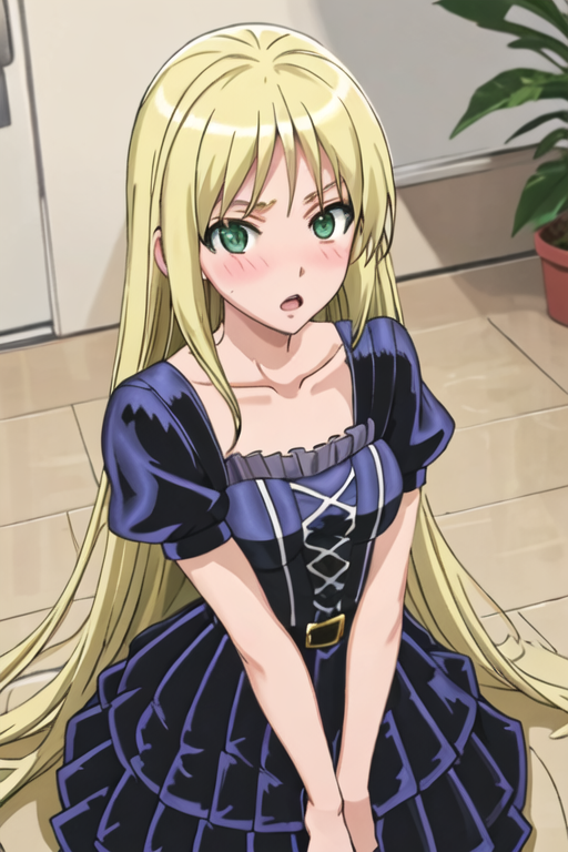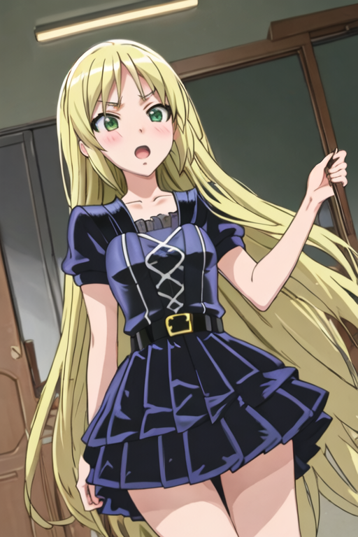The trigger word is kuroi_sena_mangakasantoassistantsanto, and the recommended tags are best quality, masterpiece, highres, solo, {kuroi_sena_mangakasantoassistantsanto:1.15}, blonde_hair, long_hair, green_eyes, blush, open_mouth.