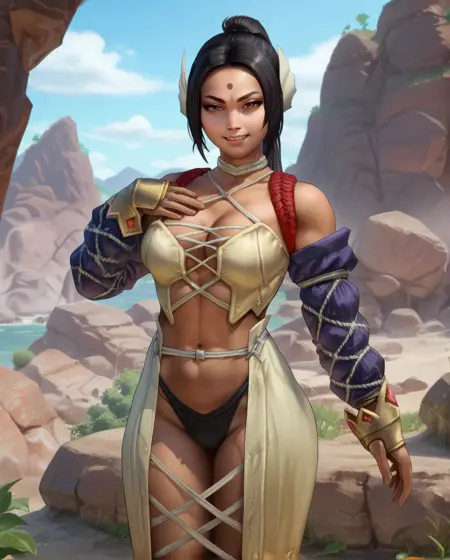 shivaxl, 青い目、青い髪、非常に長い髪、編み込みポニーテール、- 青い肌、または紫の肌、
