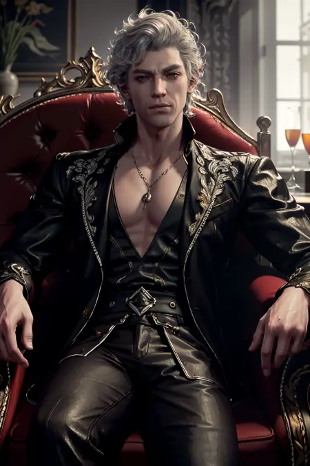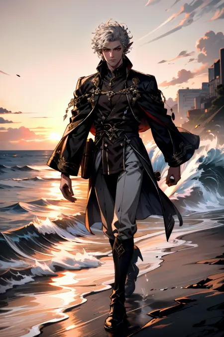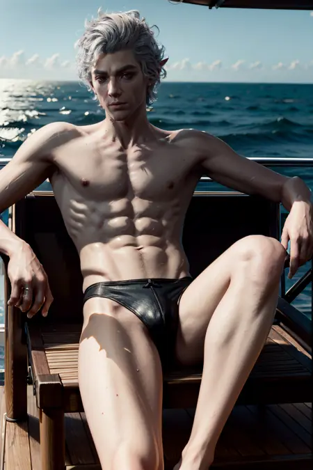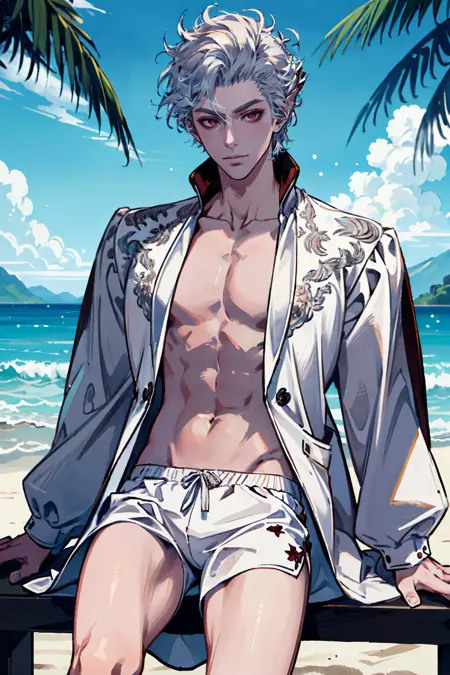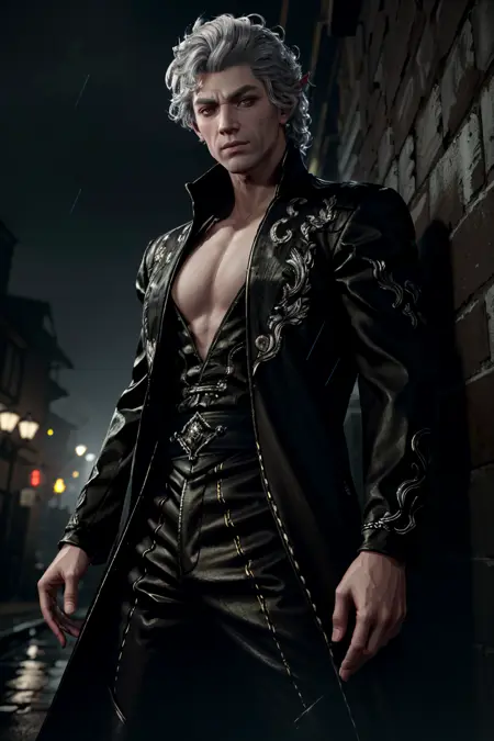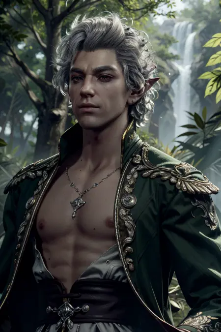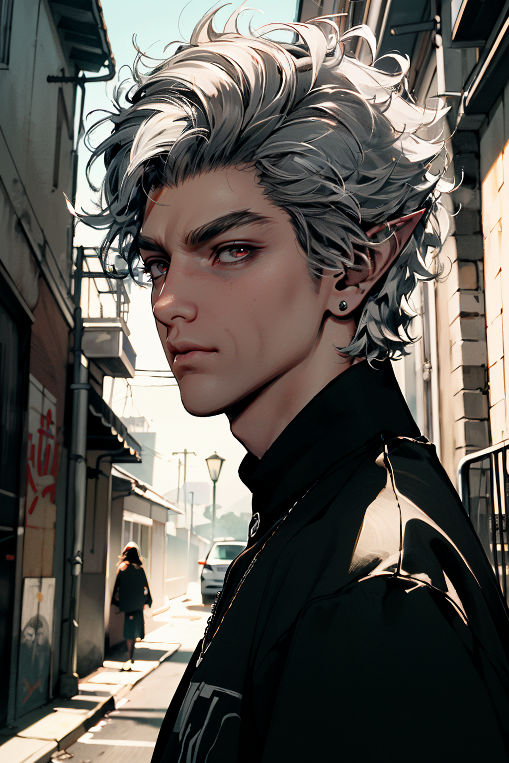 BGAstarion, 1boy, white hair, red eyes, pointy ears