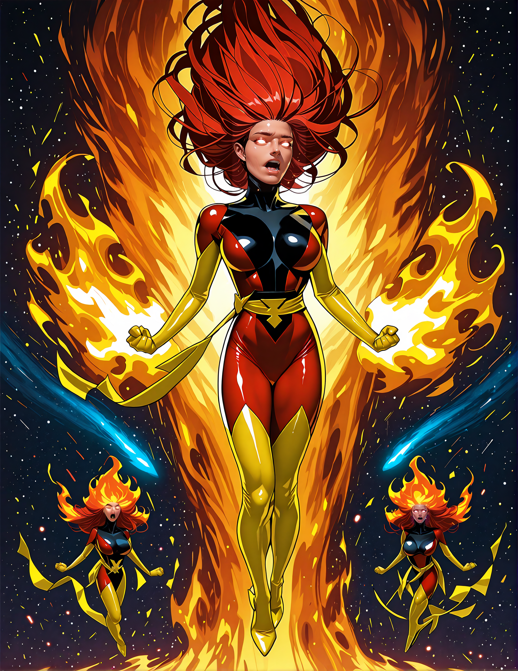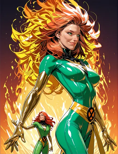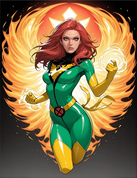 ジャン・グレイの象徴的な衣装と変身を探索しましょう。彼女はX-Menユニバースの中心的キャラクターです。このLORAには、マーベルガール、ジム・リーによる90年代の衣装、アニメシリーズ、そして最近の『X-Men 97』(2024年にDisney+で放送)の衣装に加え、ダークフェニックス、フェニックス、ホワイトフェニックス、ブラック&レッドのフェニックス衣装、そして日常着など、彼女の代表的な装いが多数収録されています。各デザインは、公式マーベルのアートやその他のリファレンスを基に忠実に再現されていますが、著作権が適用される場合があります。