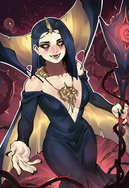 1girl, leblanc_rework, 성숙한 여성, 검은파란 머리, 윤기 나는 머리, 긴 머리, 비대칭 머리, 어두운 회색 공막, 황금 눈, 빛나는 눈, 얼굴 문신, 융실한 아이섀도우, 검은 손, 날카로운 손톱