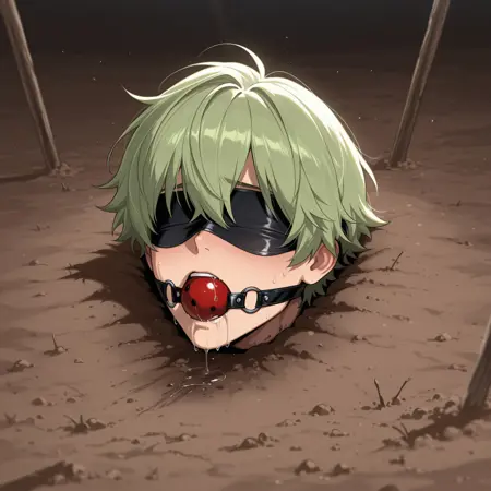 1boy/1girl等,单人,卡在{物体},{可选身体姿势,如“双腿上抬”、“弯腰”、“跪姿”},{身体部位}露出,{[可选] {颜色} 圆环} {其余描述}