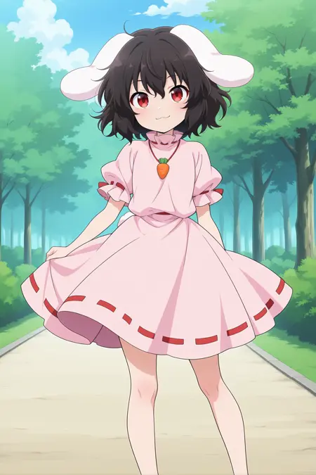 inaba tewi, 1girl, solo, red eyes, black hair, short hair, rabbit ears, floppy ears, rabit tail,