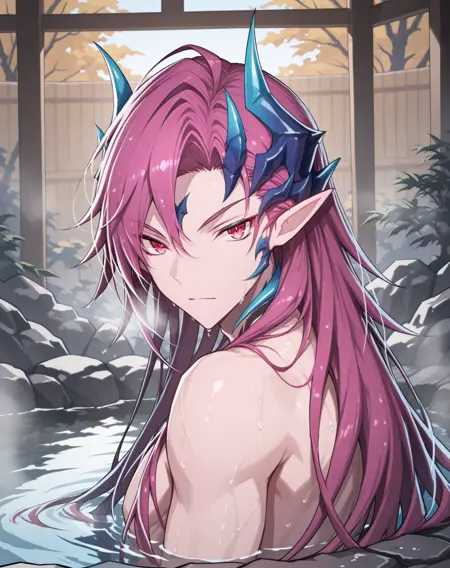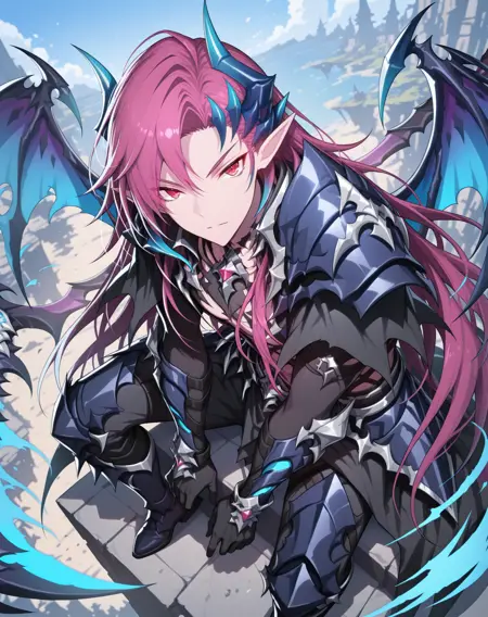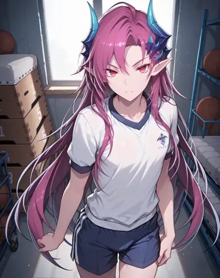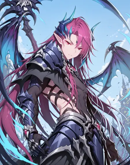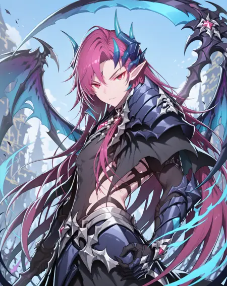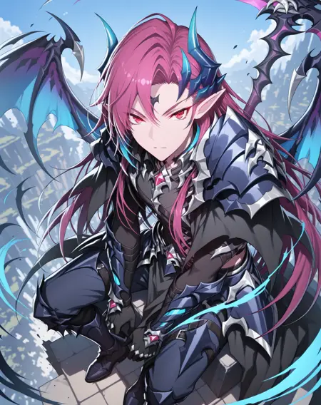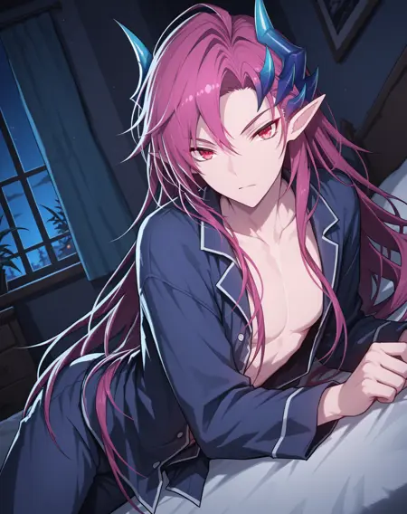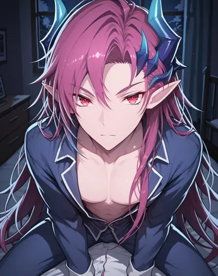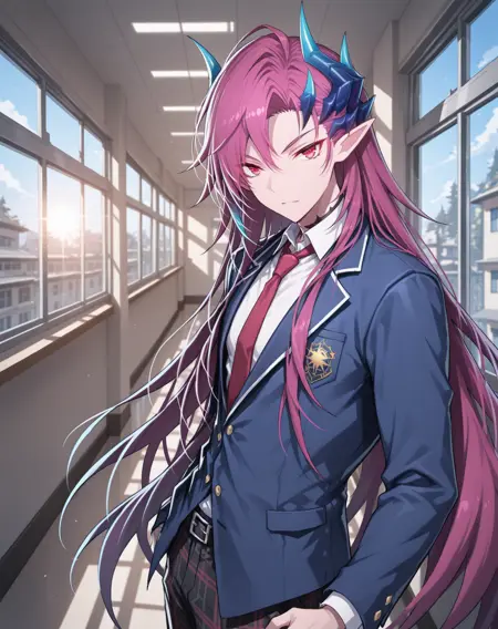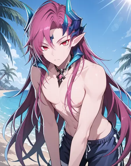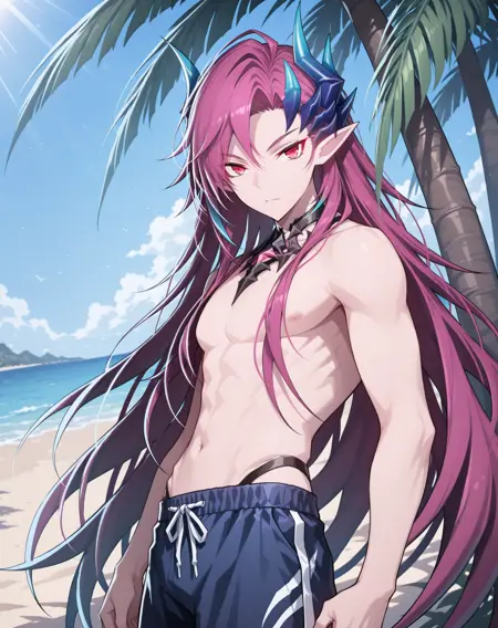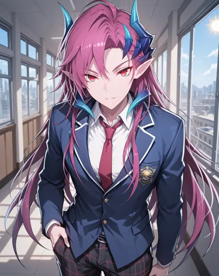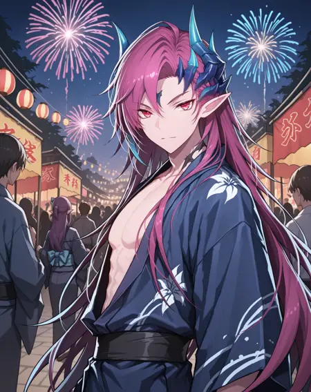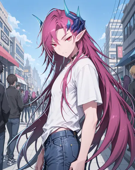 他的发色既不是粉红、也不是红色或紫色,我在尝试了几个LoRA后,试着用了“品红”这个词,结果竟然有效!这就是为什么不同版本中的头发颜色标签不一致的原因。
