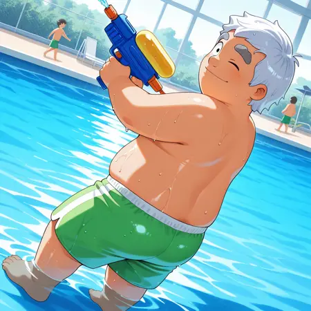Negative prompt: double chin, alternate_color, ((expressionless)), old, old man, aged up, pectorals, bara, muscular, muscle, obliques, ((nostrils)), normal nose, multicolored theme, obese, chibi, bad anatomy,