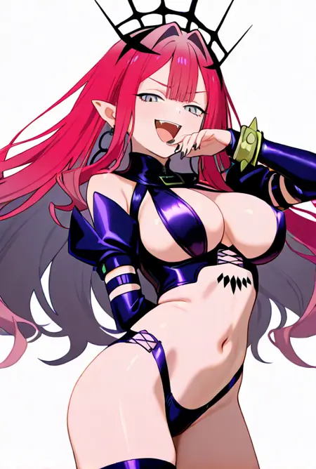 1girl, solo, 2nd_baobhan_sith_(fate), long hair, sidelocks, pink hair, tiara, jewelry, earrings, grey eyes, pointy ears,