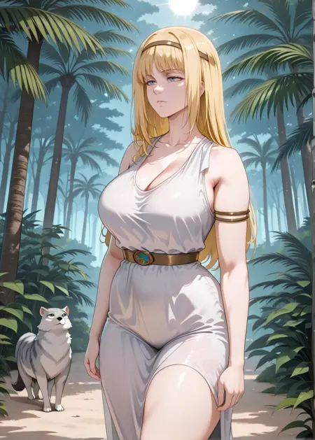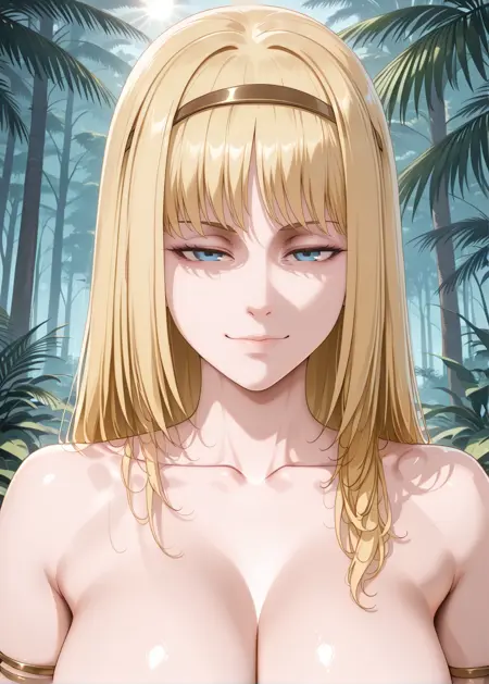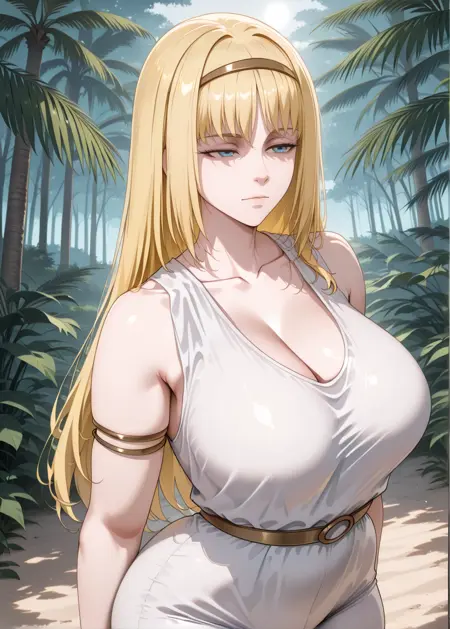 外見: ymirfritz、金髪、前髪、青い目、成熟した女性、茶色の髪飾り