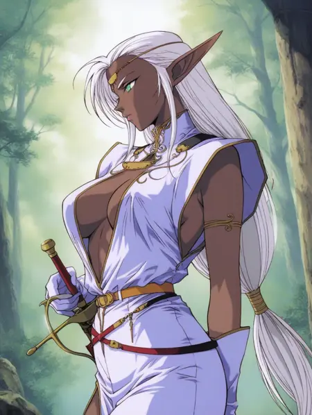 일반: 엘프, 다크 엘프, 뾰족한 귀, 흰 머리, 녹색 눈, 긴 머리, 원형 헤어리스