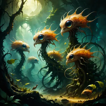 如果你偏好怪异奇妙的效果,可以尝试在负向提示中加入 (human:1.x)、(humanoid:1.x)(对沃贡人来说,这些大概也是怪物吧):p