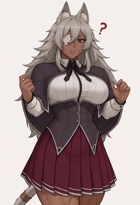 标签: 校服, 黑色小披肩, 白色衬衫, 领结, 黑色丝带, 长袖, 黑色束腰, 红色裙子, 百褶裙