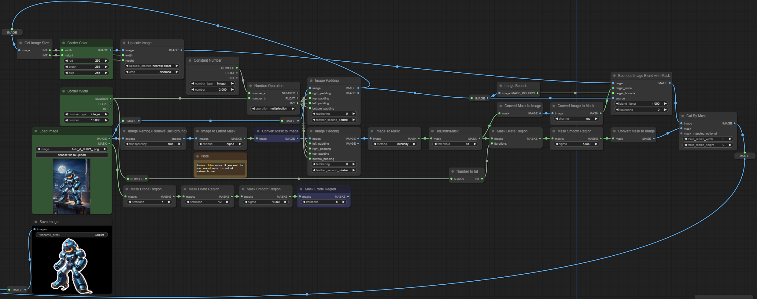 这是一个简单的流程,用于自动从图像中抠出主体,并在其周围添加彩色边框。背景为透明。