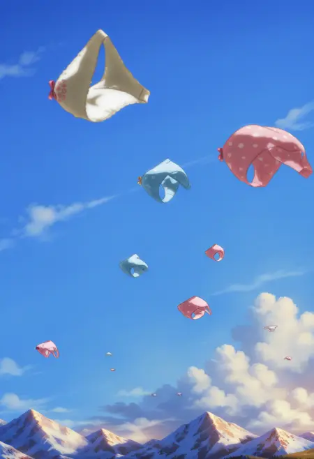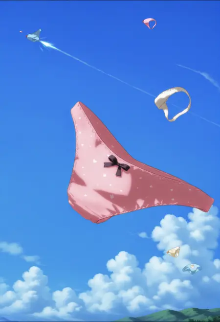 The lora is based on the ending theme of "Heaven's Lost Property", the 2010s anime series. It draws the scene of the panties flying-like. I created the Lora because I had a vision of panties flying around in my brain when I had a cold and a fever.