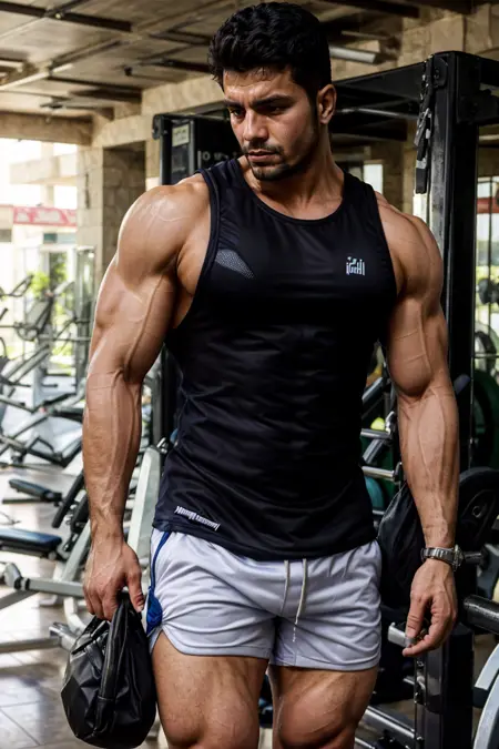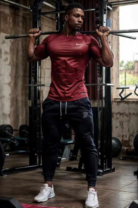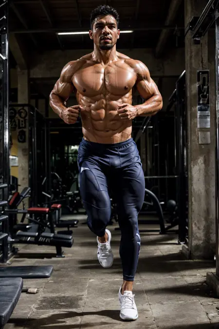 这基本上只是一系列随机的男性健身服饰和服装。通过大量真实的男性在健身房锻炼的照片训练,你可以据此提示出特定的健身姿势,比如举重等。
