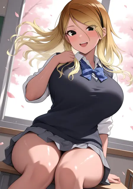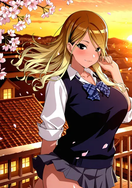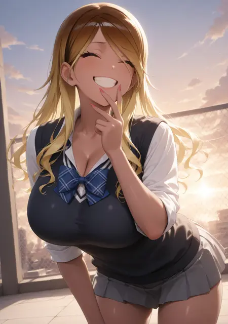 "校服,黑色背心,白衬衫,有领衬衫,蓝色蝴蝶结,格子蝴蝶结,卷起袖子,灰色短裙,百褶裙,迷你裙"