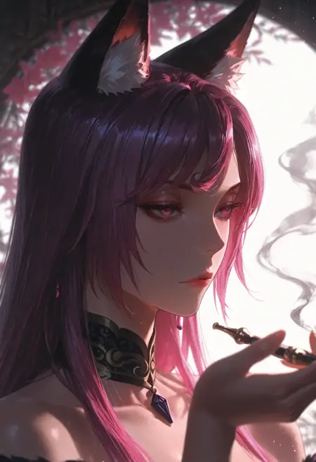 尹梅,多尾,狐尾,兽耳,粉眼,