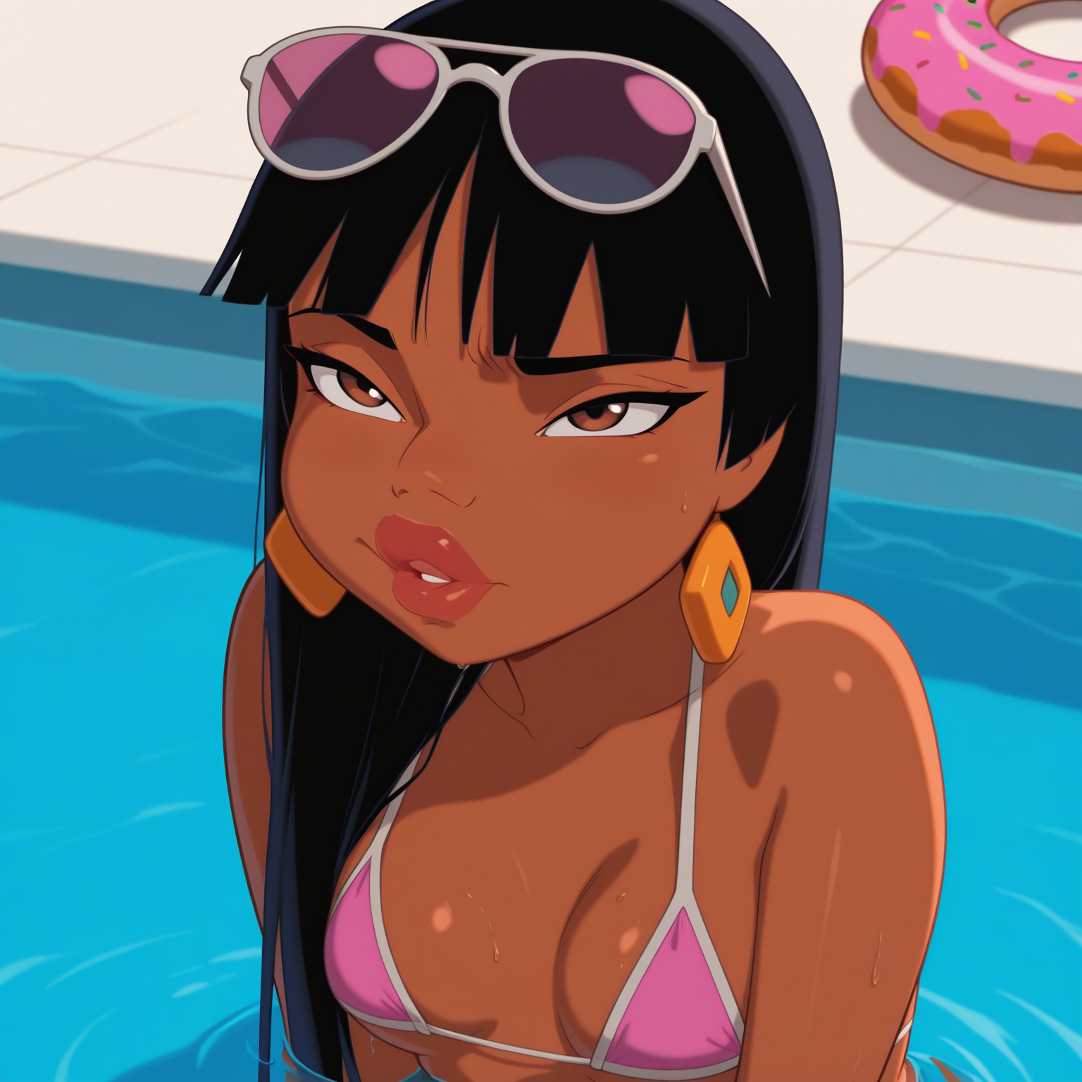 拉丁裔女孩,深色皮肤女性,刘海,长发,黑发,棕色眼睛,宽臀,性感身材,健美身材,厚唇