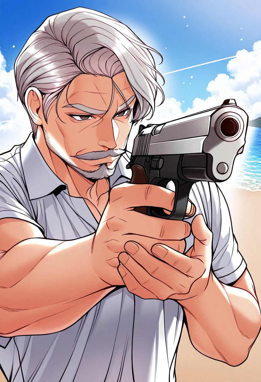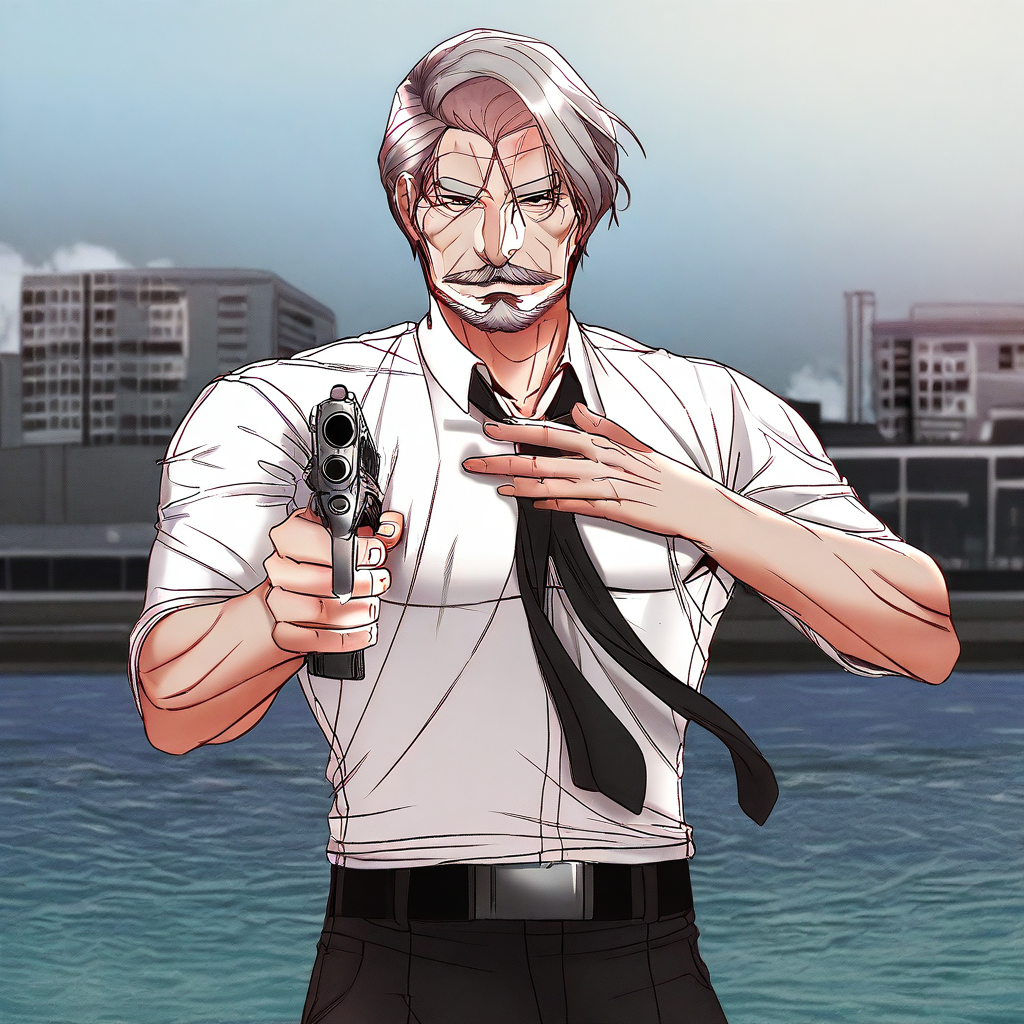 (( lora:park_deok-man:1 , park_deok-man, 날카로운 진갈색 눈, 맑은 눈, 엄격한 눈, 단단한 근육질 몸매, 남성적, 강한 남성, 알파 남성, 알파 남성 피부, 주름, 짧은 회색 머리, 측면으로 스윕된 머리, 짧은 회색 수염, 짧은 회색 수염, 회색 눈썹, 최고의 남성, 매력적인 남성, ))