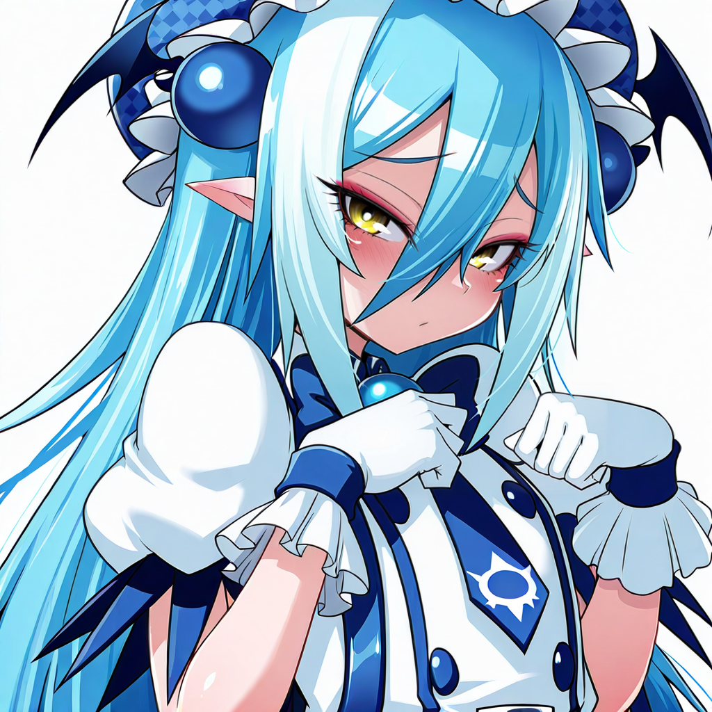 ベース: 黄色い目、長い髪、青い髪、尖った耳、目の間の髪