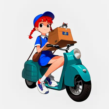 이 모델은 어떤 장르의 캐릭터도 생성할 수 있지만, 특히 익스프레스 배달 모티프를 포함한 캐릭터 생성에 가장 뛰어납니다.