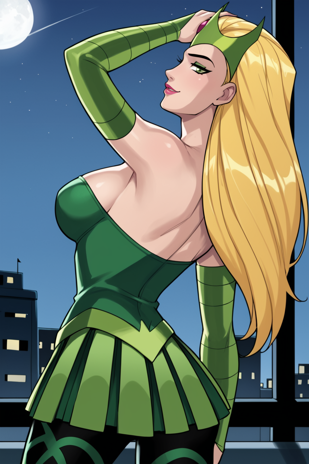 Base Prompt: amora, long hair, blonde hair, green eyes, makeup, lipstick
