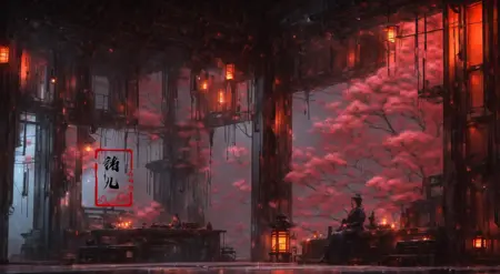 这是一个建筑背景LORA,提供风格化庭院,餐厅,建筑,背景。