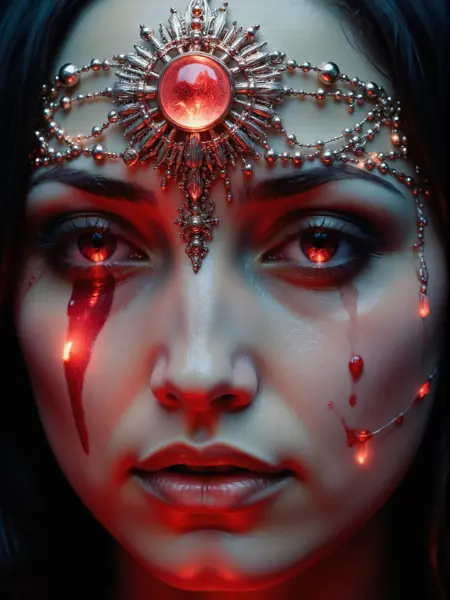 繊細で発光する女性のデジタルアート。未来志向の詳細が施されている。 <lora:Electrified Flux v1:1>
