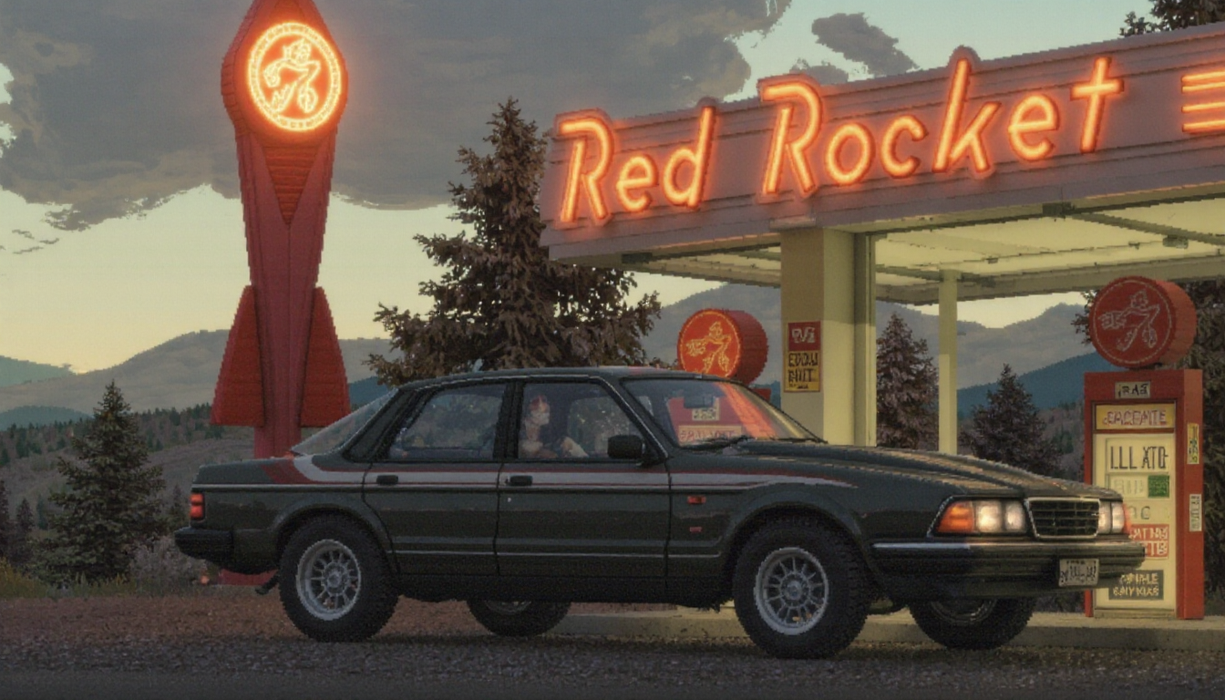 复古美学,现代渲染:捕捉《Keep Driving》的精神——孤独的道路、辽阔的氛围与复古车辆设计——但以干净、非像素化的方式呈现。想象一下1970年代/80年代的旅行海报或经典汽车插图。