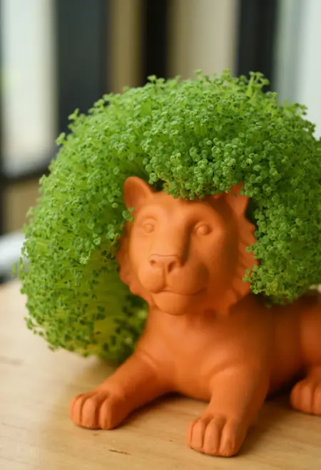 各創造物は、正確に再現された不均一な成長パターン、どれだけ水をやっても埋まらない不思議な薄毛部分、そして少なくとも1か所、芽があまりにも活発に成長して、不幸な皮膚病のように見える部分を特徴としています。