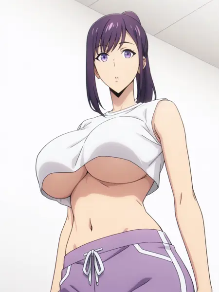 推荐提示词: "s_j, 1girl, 紫色头发, 马尾, 紫色眼睛"
