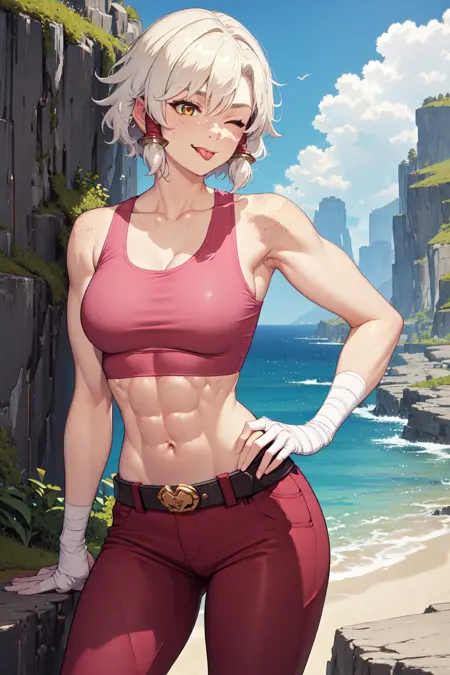 트리거: "KayeBlushySpicy"는 항상 필요하며, 정확도를 높이려면 "toned" 또는 "muscular"와 함께 " freckles, scar on face"를 추가하세요.