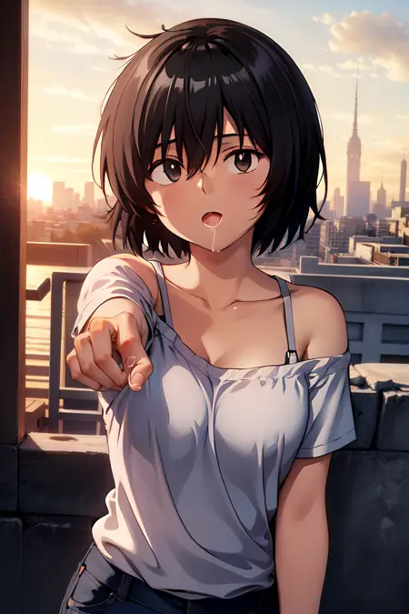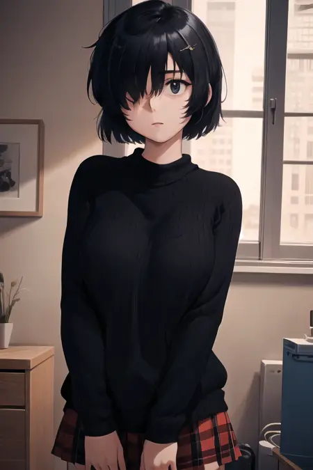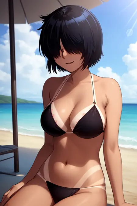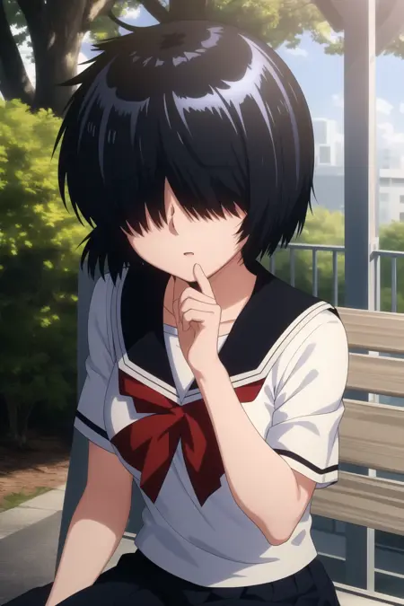 可使用头发遮住一只眼睛或双眼前发,有时(取决于模型)需要加权,1.1 至 1.2 为理想值。