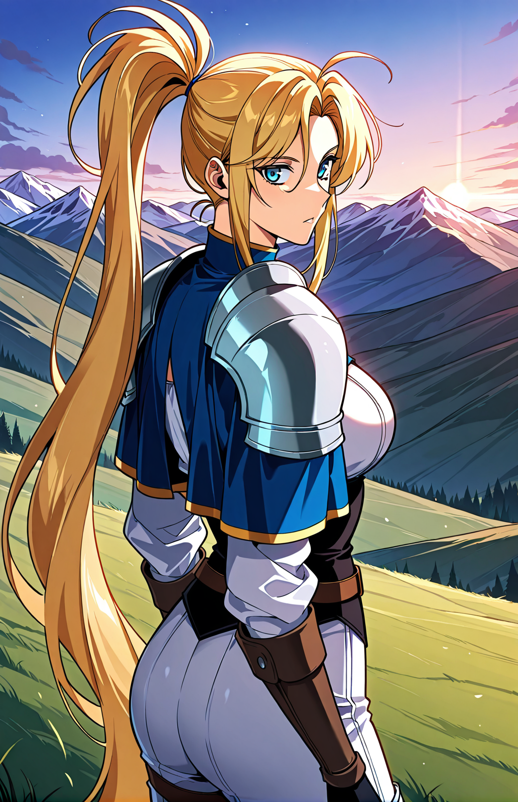 Froidmain,1个女孩,单独,蓝眼睛,金发,长发,侧分刘海,头发遮住眼睛,长鬓发,高马尾,头发束在脑后,