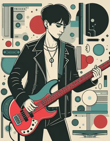 평면 색상과 검은 윤곽선을 가진 일러스트레이션, ...