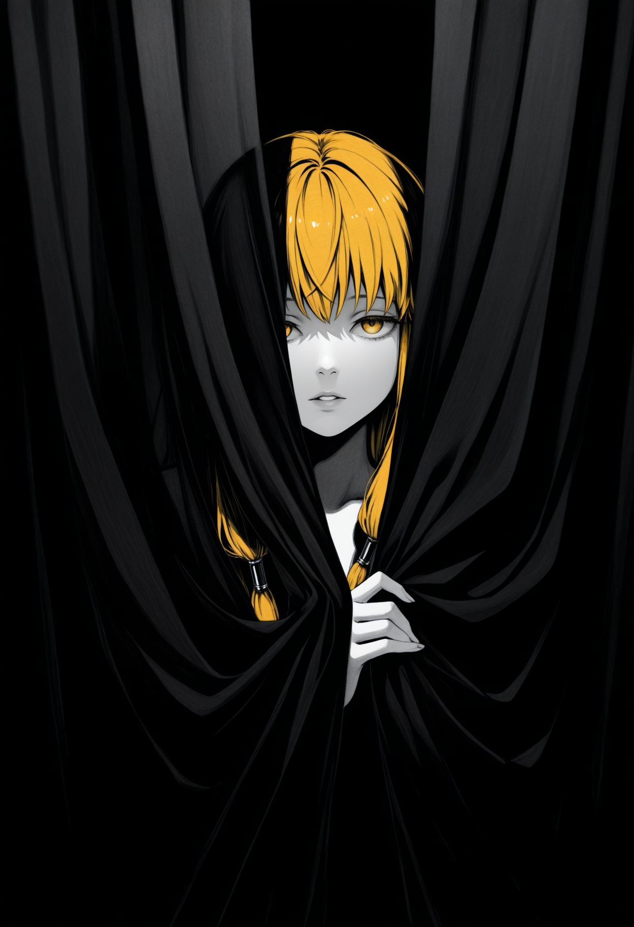 S3ri3, yellow eyes, blonde hair, long hair, hair tubes, ear bar