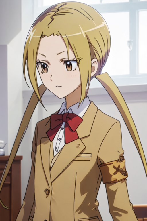 - 프루닝된 캐릭터 태그는 blonde_hair, twintails, long_hair, brown_eyes, bow입니다. 캐릭터의 핵심 특징(예: 머리 색상)이 안정적이지 않을 때 이 태그를 프롬프트에 추가할 수 있습니다.